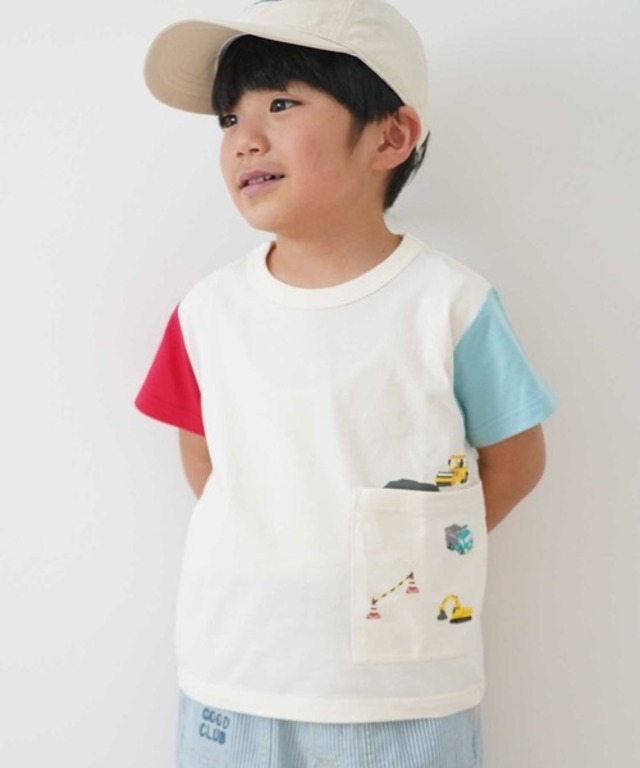 綿100%で通気性のよい天竺の半袖Tシャツです。 裾のポケットに重機の刺繍デザインがおしゃれな袖配色デザイン! ベビーサイズは肩開き仕様です。 素材 〈本体〉綿 100% 〈リブ部分〉綿 95% ポリウレタン 5% ※店頭と在庫を共有しています。店頭で売れるのとタイミングが重なって売り切れてしまう場合がございます。ご容赦ください。