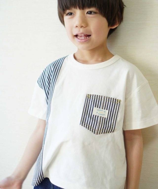 綿100%で通気性のよい天竺の半袖Tシャツです。 デニム素材の切替とポケットがポイント! ベビーサイズは肩開き仕様です。 素材 【C/#1】〈本体〉綿 100% 〈リブ部分〉綿 95% ポリウレタン 5% 〈切替・ポケット部分〉100%綿 【C/#2】〈本体〉綿 100% 〈リブ部分〉綿 95% ポリウレタン 5% 〈切替・ポケット部分〉綿 98% ポリウレタン 2% ※店頭と在庫を共有しています。店頭で売れるのとタイミングが重なって売り切れてしまう場合がございます。ご容赦ください。