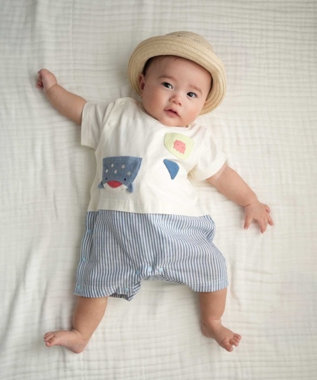 【綿100%】 Si・Shu・Non(シシュノン)の「サロペットロンパース」は、 柔らかいガーゼ素材を使用し、 股下の中心はお着替えしやすいよう配色ボタンです。 ギフトや出産祝いにもおすすめです。 素材 〈本体〉綿 100% 〈リブ部分〉綿 95% ポリウレタン 5% 〈アップリケ部分〉 綿 80% ポリエステル 20% ※店頭と在庫を共有しています。店頭で売れるのとタイミングが重なって売り切れてしまう場合がございます。ご容赦ください。