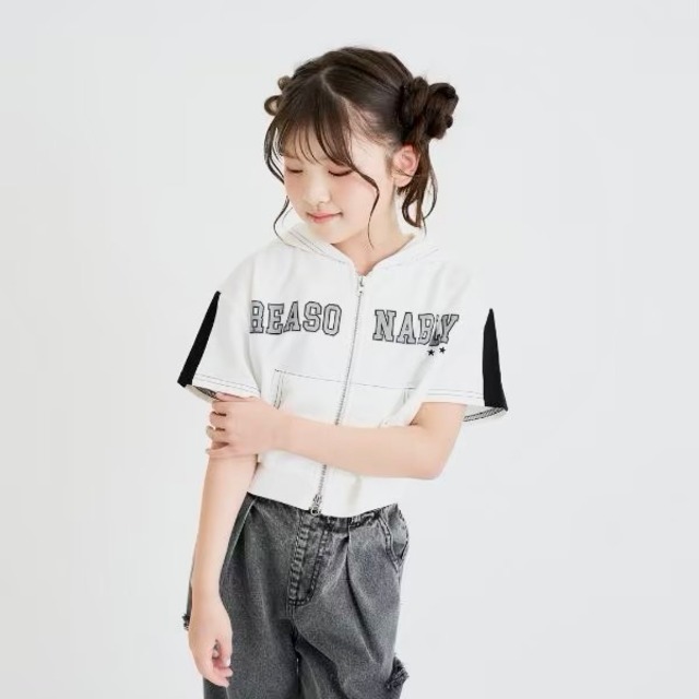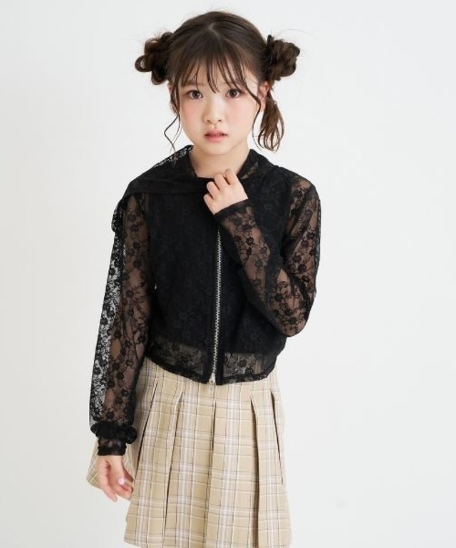 【デザイン】パーカとタンクトップの2枚セットです。 ジャストサイズで着るのが今っぽくておすすめ。 使いやすいオフホワイトと黒の2色展開です。 ダブルジップになっているので、上下どちらからもインナーをチラ見せできます。 【素材】 パーカは薄手のレース、タンクトップはコットン混の素材。 【おすすめスタイリング】 プリーツスカートやデニムパンツと合わせて、ガーリーすぎないMIXコーデにするのがおすすめです。 お持ちのカラーアイテムを中に着ても可愛く決まります。 #小学生コーデ #ガーリー #進級入学コーデ #通学コーデ #120cm #130cm #140cm #150cm #160cm ※照明の関係により、実際よりも色味が違って見える場合があります。 また、パソコン・スマートフォンなどの環境により、若干製品と画像のカラーが異なる場合もございます。 -・-・-・-・-・-・-・-・-・-・-・-・-・-・-・-・-・-・-・-・-・- 【透け感】透ける 【生地の厚さ】薄い 【伸縮性】あり 【裏地】なし 【ポケット】なし 素材 アウター:ナイロン87% アウター:ポリウレタン13% インナー:ポリエステル66% インナー:綿34% ※店頭と在庫を共有しています。店頭で売れるのとタイミングが重なって売り切れてしまう場合がございます。ご容赦ください。
