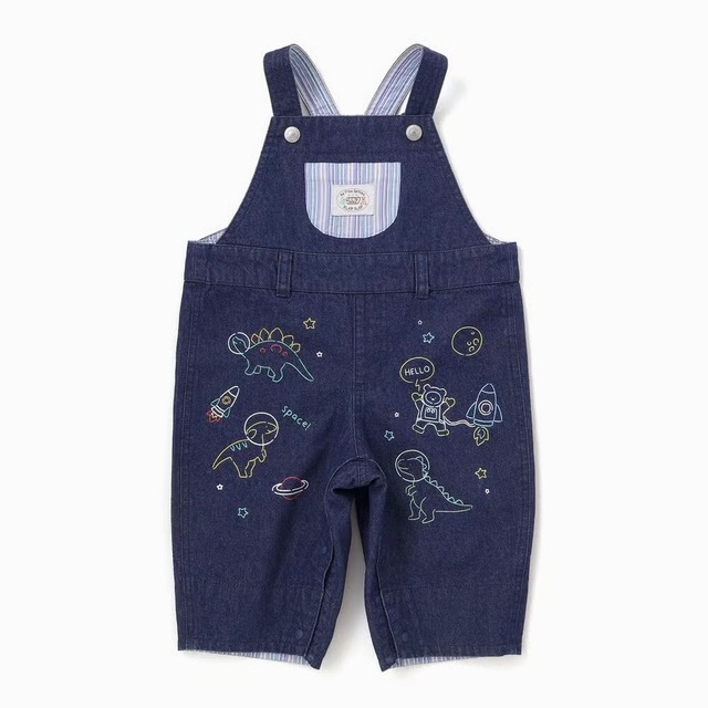 -26SS- 男の子の毎日をおしゃれに彩るサロペット。 ■デザイン デニム生地には恐竜と宇宙のモチーフのプリントをオン!男の子の夢がギュギュっと詰め込みました。 お兄ちゃんみたいな胸ポケットがポイント。 ブランドネームタグがオシャレなアクセントになっています。 パンツの裾裏にはチェックの生地を使用しているからロールアップするのもオススメ。 コーディネートもしやすく、Tシャツやシャツと合わせるだけで簡単に可愛く決まる便利アイテムです。 動きやすさと可愛らしさを両立させたデザインで、デイリーからお出かけまで幅広く活躍すること間違いなし! デザイン性と機能性を兼ね備えた、男の子の毎日にぴったりの1枚です。 ■素材/機能 ネイビーは丈夫なデニム素材でカジュアルに。 肩紐は調節可能で、成長に合わせて長さを変えられるので長く着用で着るのがうれしい。 ※胸ポケットあり。 ※柄の出方は生地の裁断により一点一点異なります。 ※生地の特性上、色落ちや色移りする可能性があります。 ※淡色製品とあわせての洗濯・着用に十分ご注意ください。 26春夏アイテム 【SLAP SLIP(スラップ スリップ)】 ~子どもの欲しいをカタチに~ ヨーロッパのこどものように 子どもらしい今しか着れないナチュラルなかわいさを提案 どこか上品で清楚感漂うフレンチカジュアルは いつものコーディネートをさりげなく格上げ アイテム詳細 商品番号 1837-81200 素材 (本体)綿100% (柄部分)綿100% 部分使い:ポリエステル80% 綿20% カラー グリーン、ネイビー サイズ ワンサイズ(70-80cm) 実寸 ワンサイズ(70-80cm):ウエスト32 パンツ丈33.5 肩紐長さ(NP側)20.5 裾幅14.5 ※店頭と在庫を共有しています。店頭で売れるのとタイミングが重なって売り切れてしまう場合がございます。ご容赦ください。