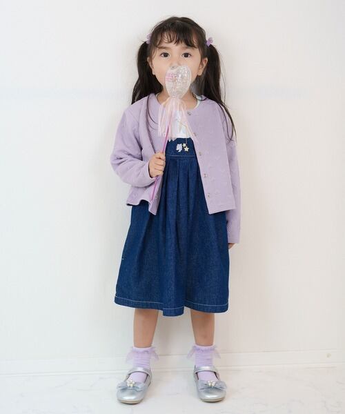 重ね着にピッタリのジャガードキルトカーディガン。