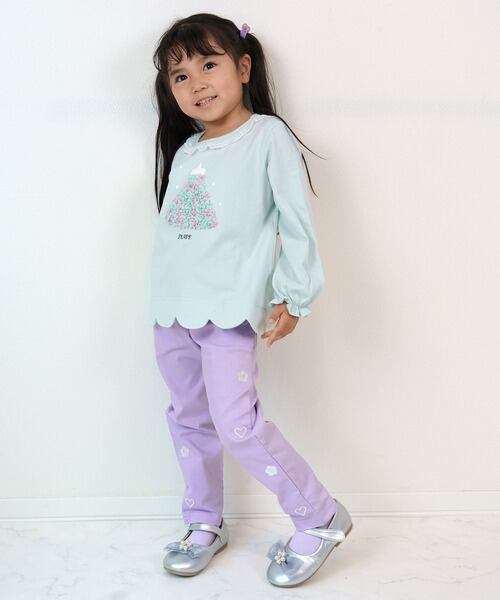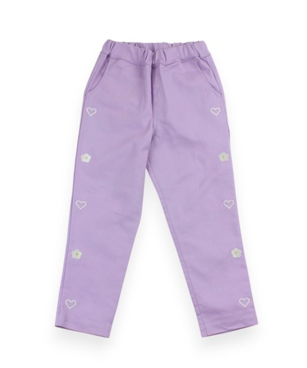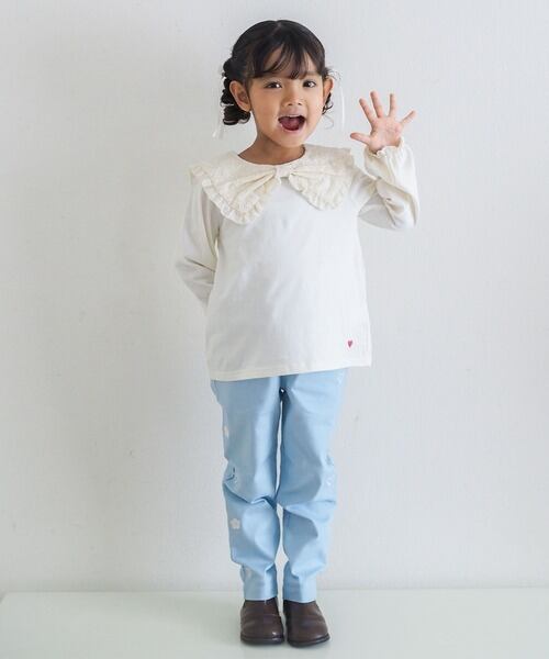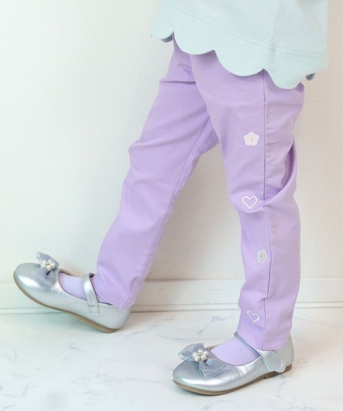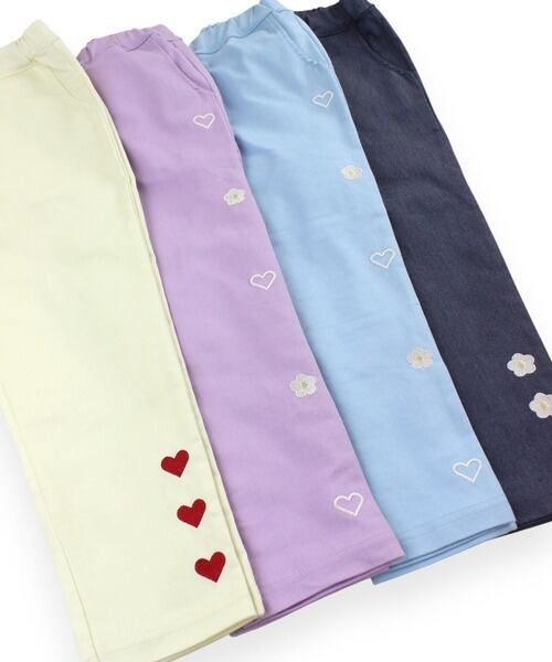 刺繍のポイントがキュートで履きやすいストレートパンツになります。