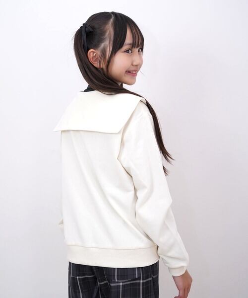 セーラーエリがかわいい、シワになりにくい素材のカーデです!