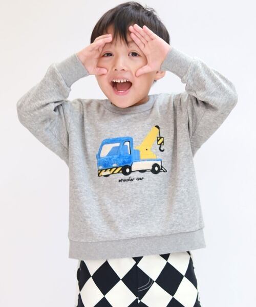 重機のモチーフが目を引くトレーナーです。
