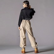 シルエットは裾ゴムでほどよくルーズだから、スニーカーにもブーツにも相性バツグン。