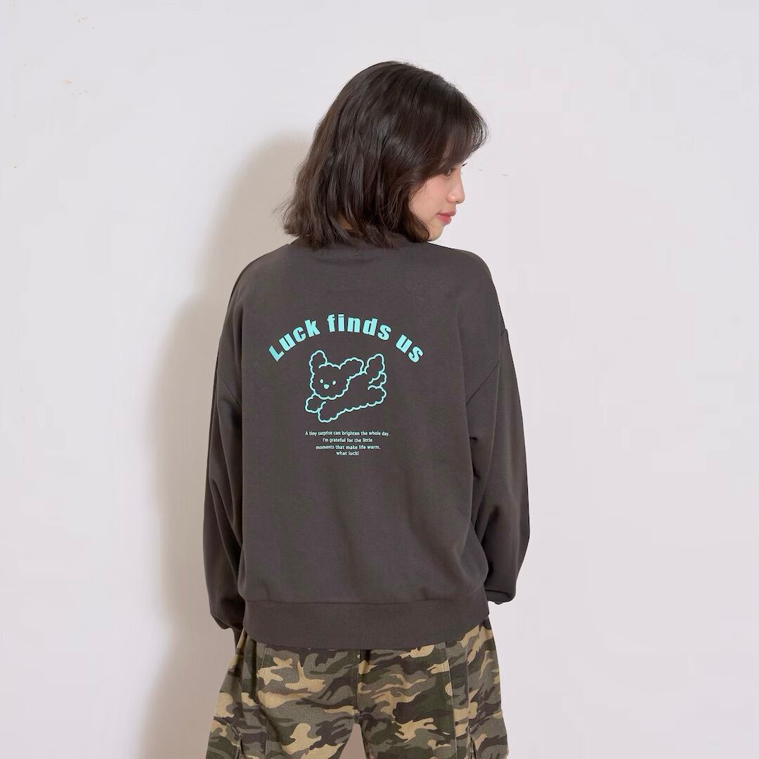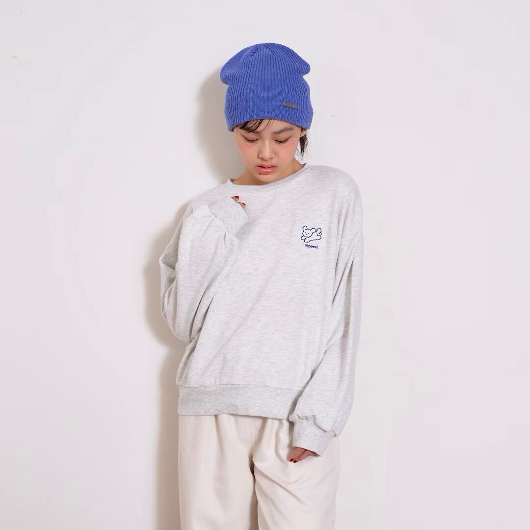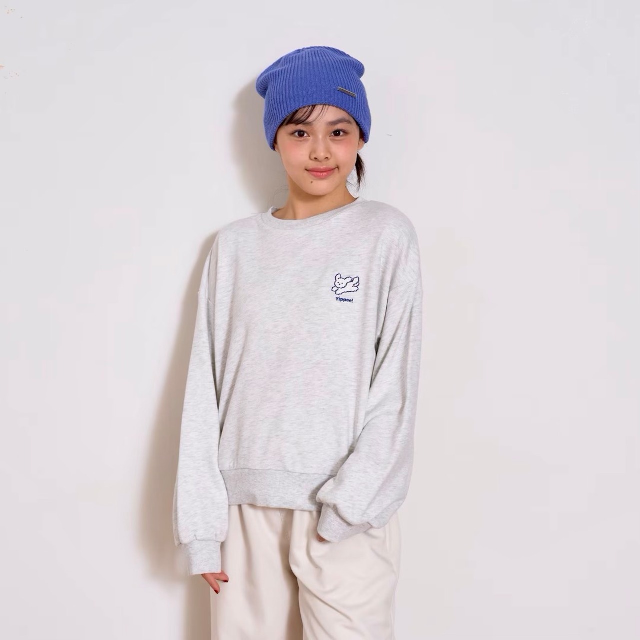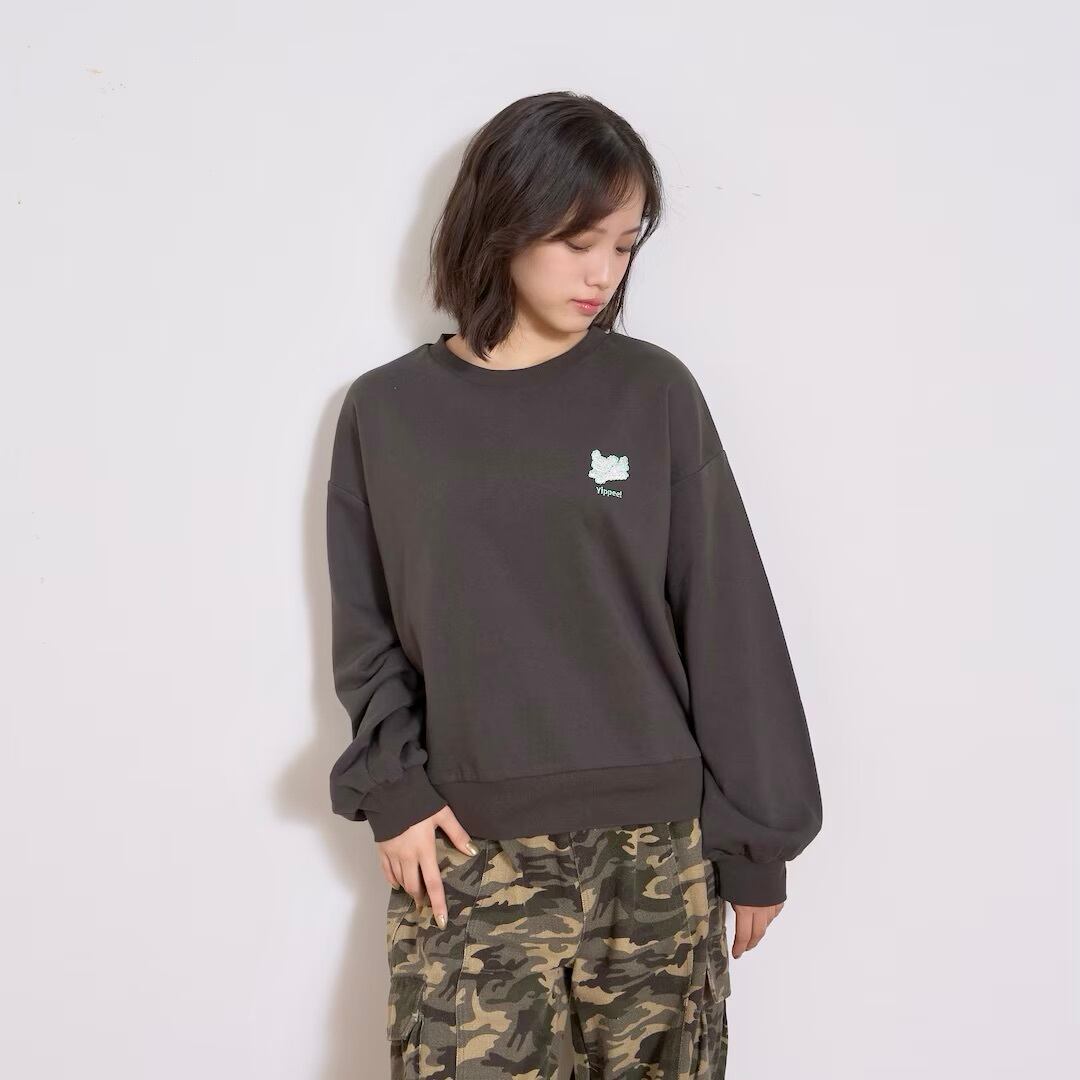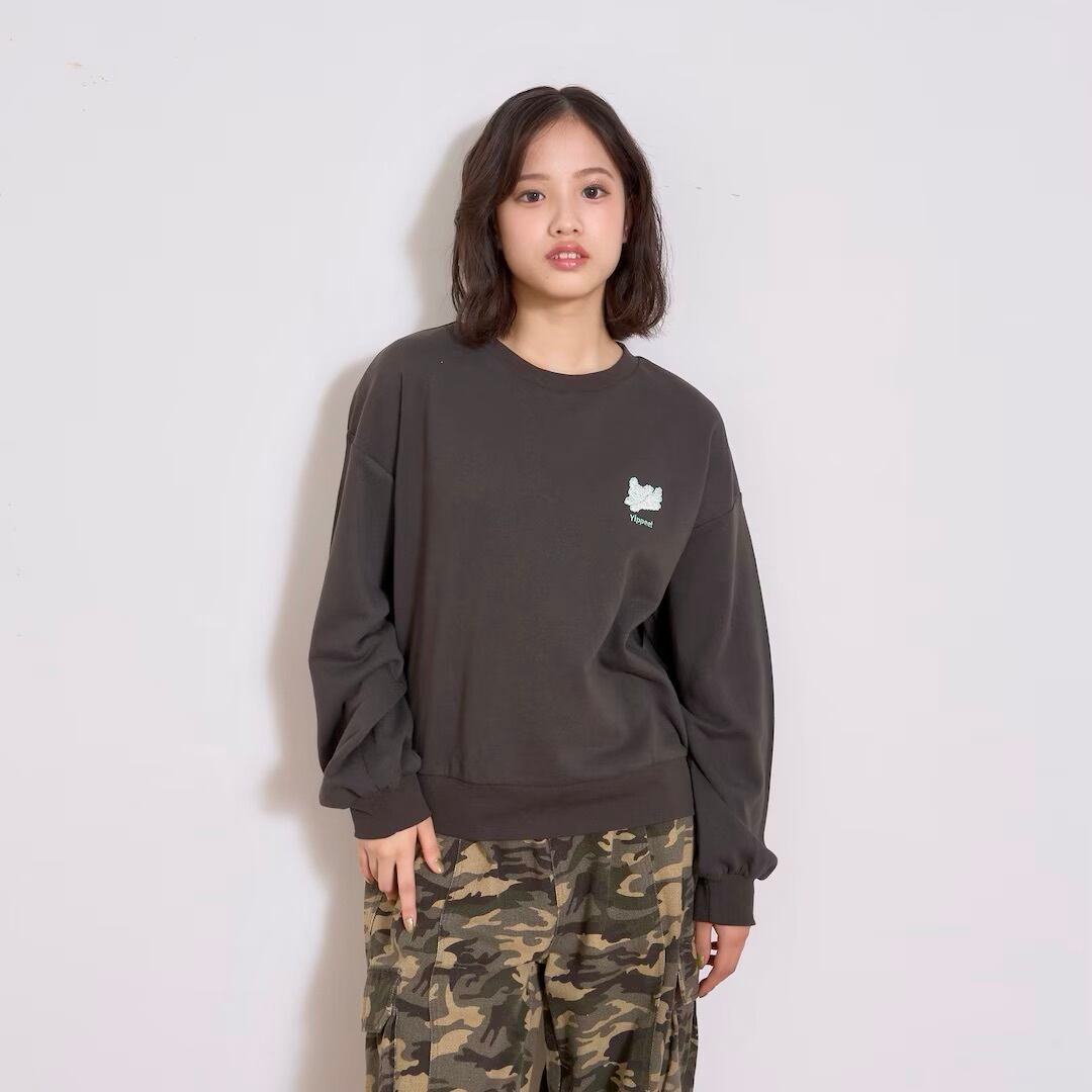 飛んでいるようなアニマルのグラフィックが可愛いトレーナーです。