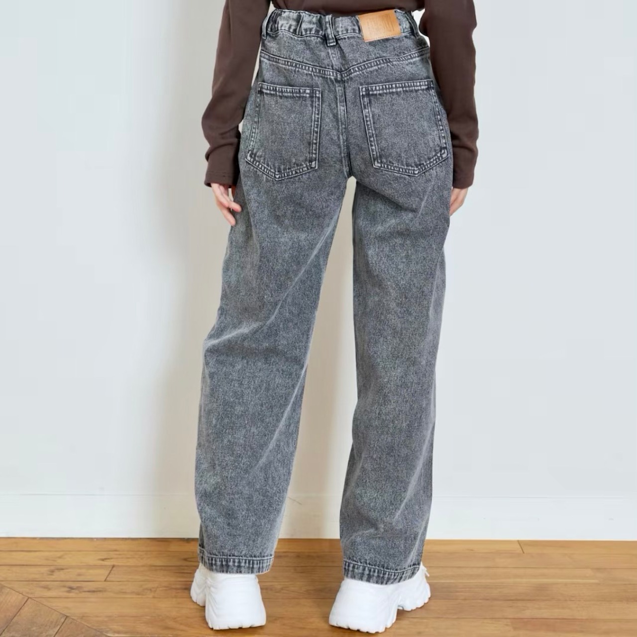ハイウエストかつストレートシルエットなので、スタイルがすっきりと見えます。
