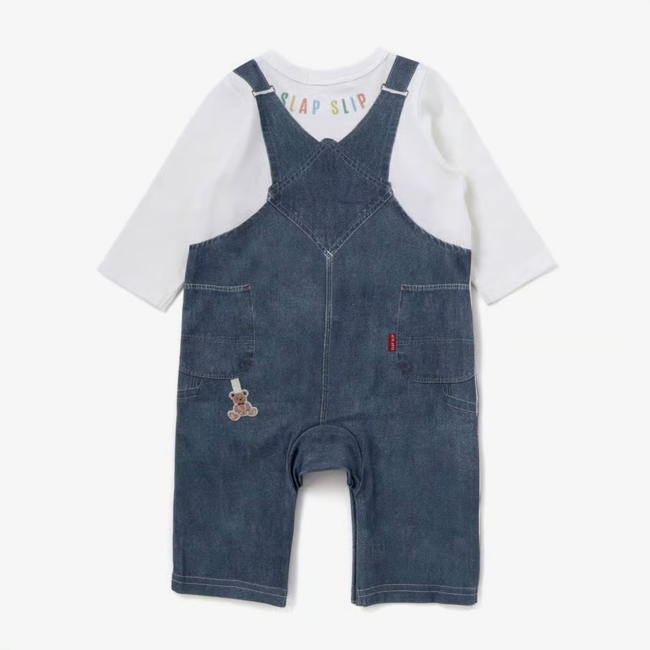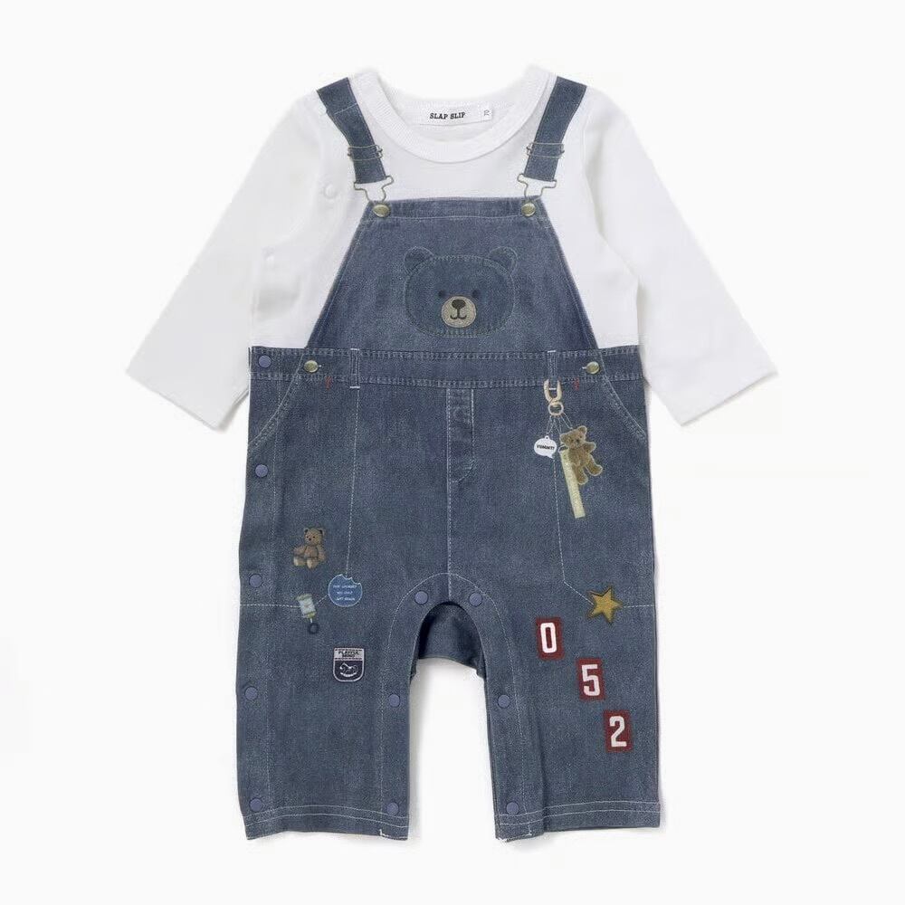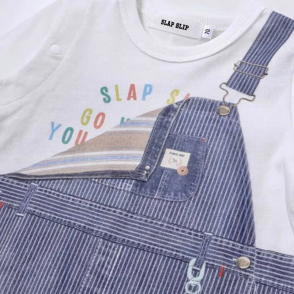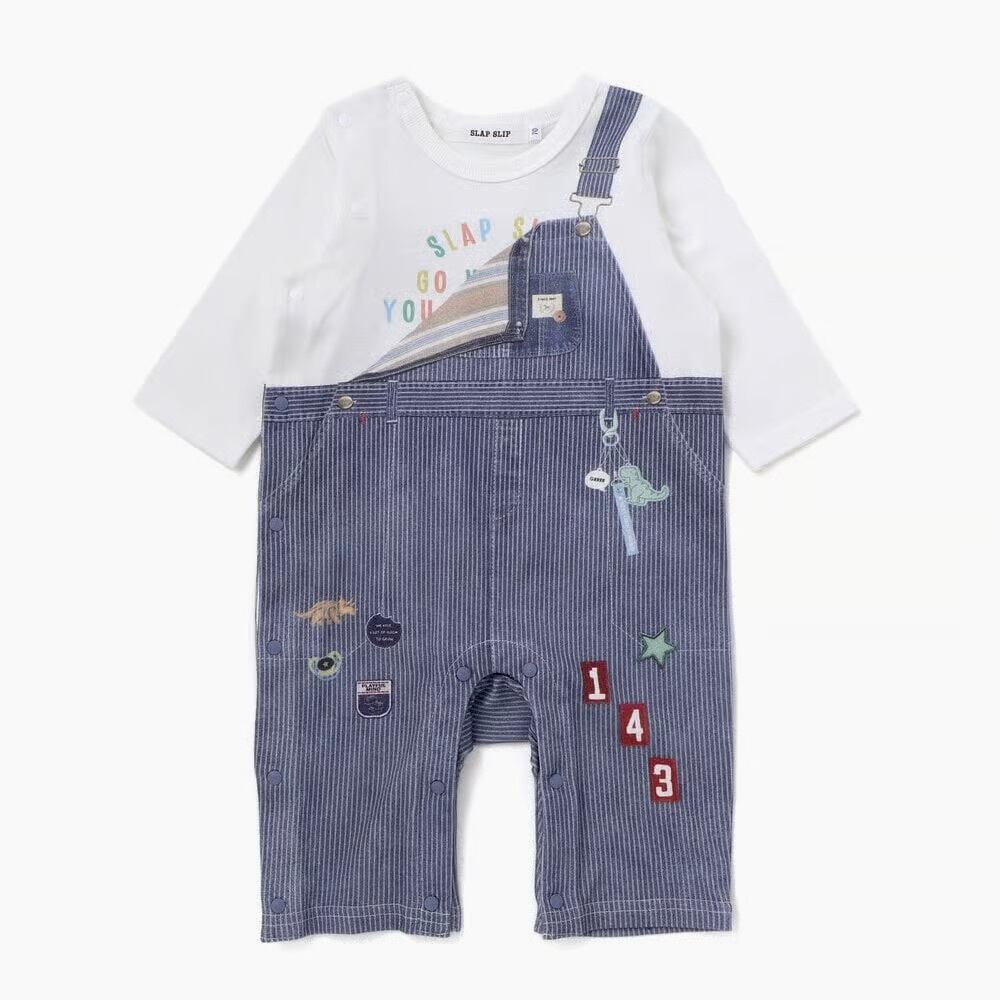 SLAP SLIP baby アニマルクマさんストライプサロペット重ね着風プリントロンパース 1837-81222