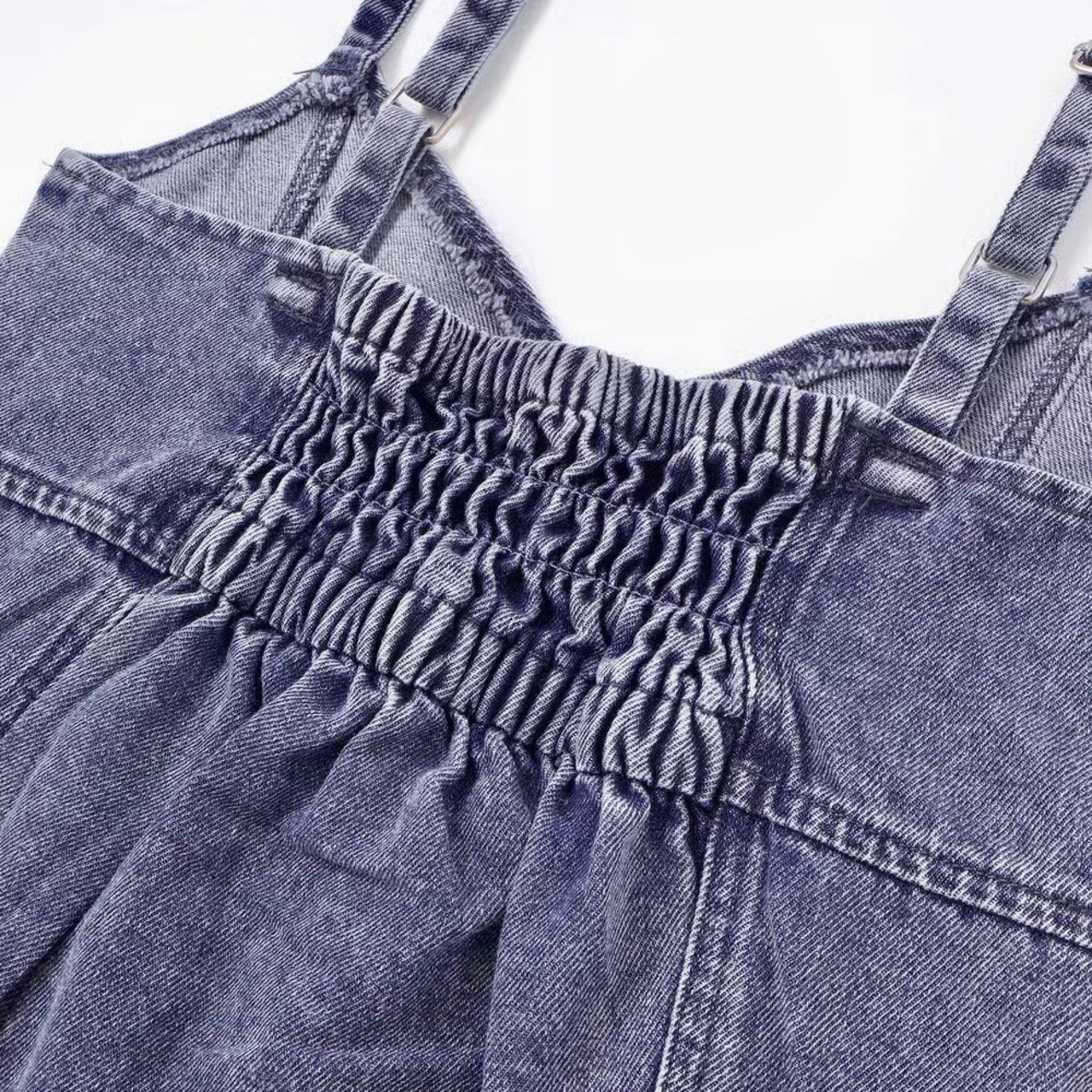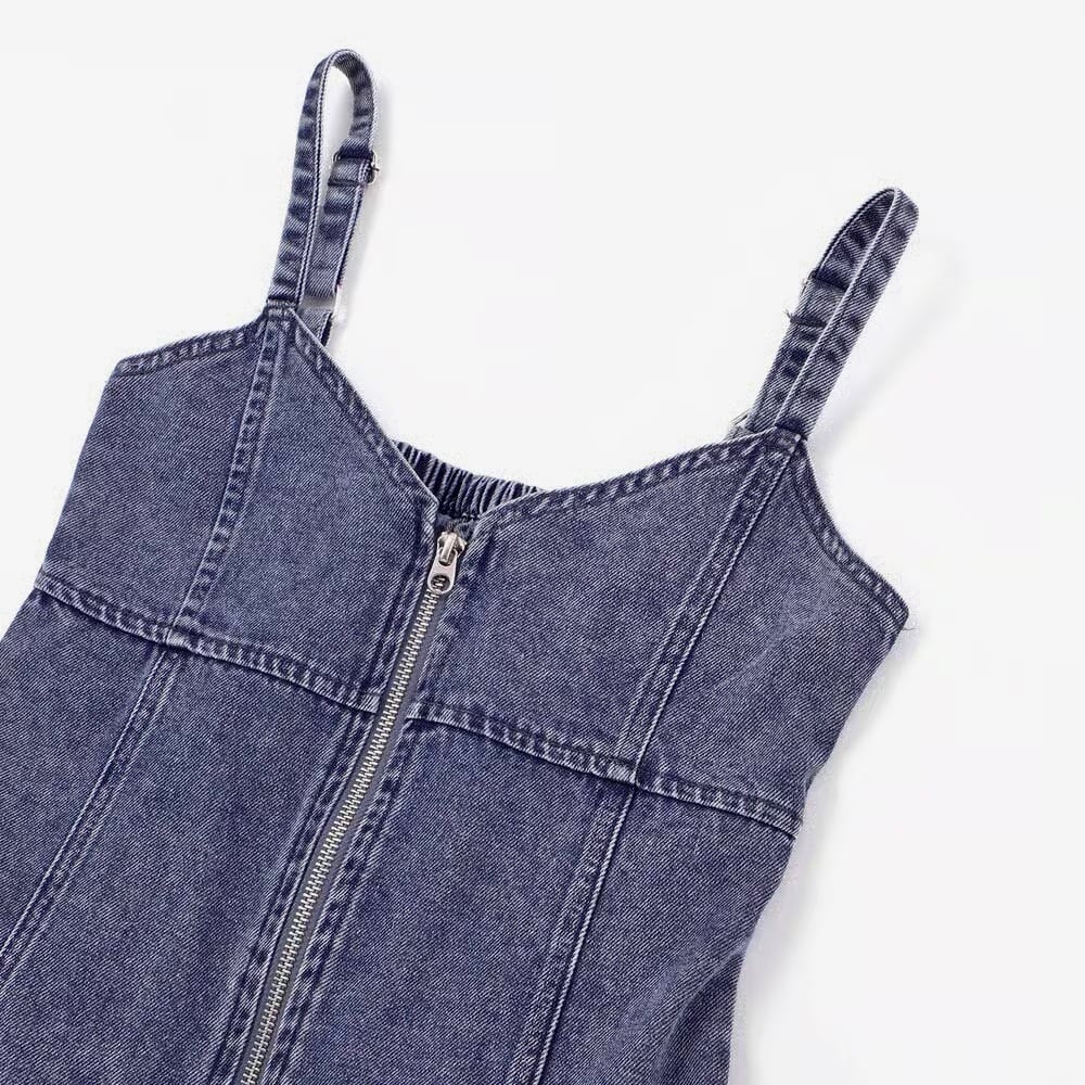 ビスチェ部分は軽めのデニムタッチ素材で、春夏でも快適なさわやか着心地。