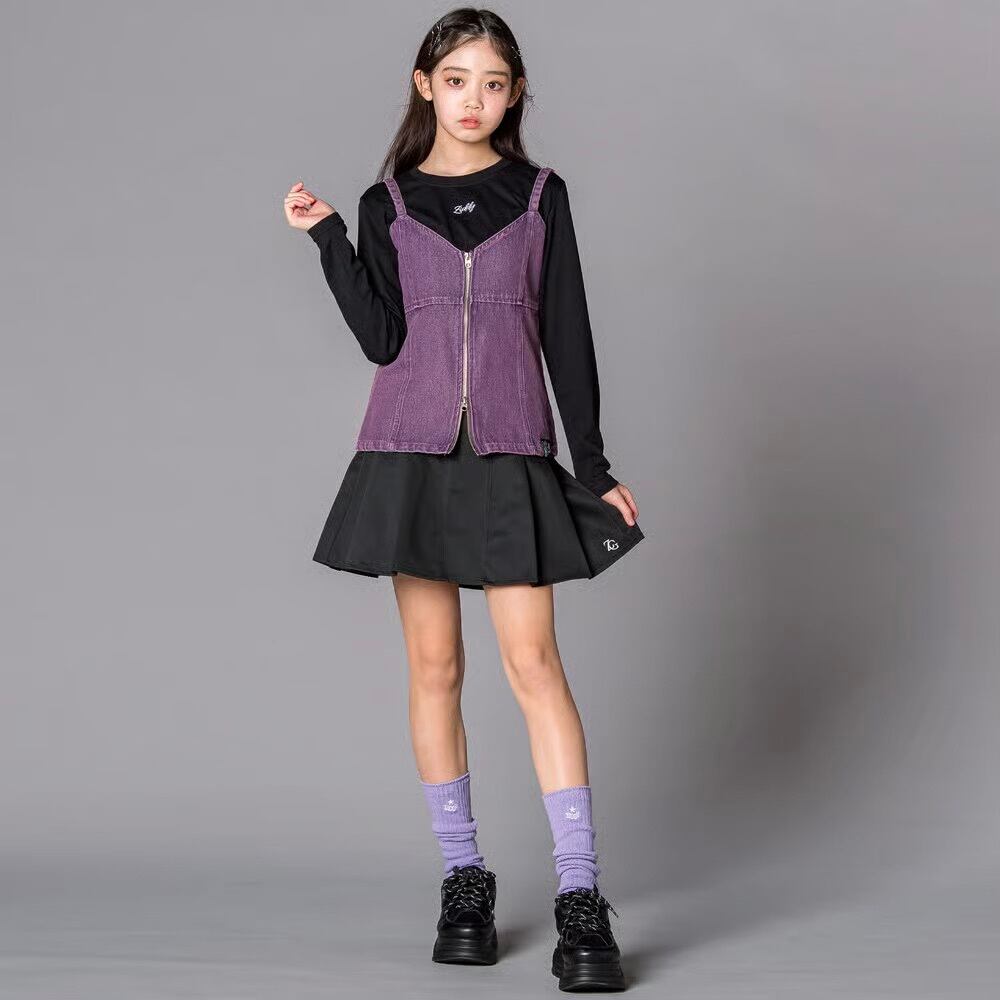韓国トレンドにウエスタンコアのムードをミックスした、ビスチェ×ロンTのトレンド最強SET。