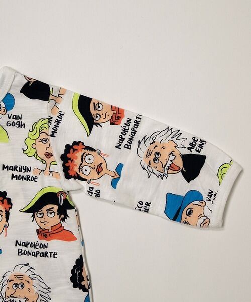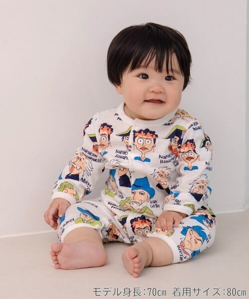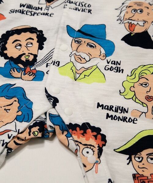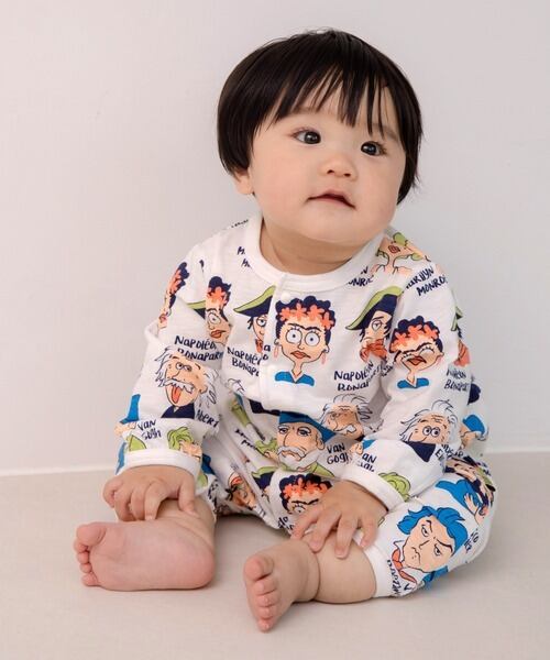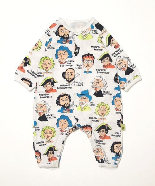 MAKE YOUR DAY メイクユアデイ コミックえらい人総柄長袖ロンパース M610402