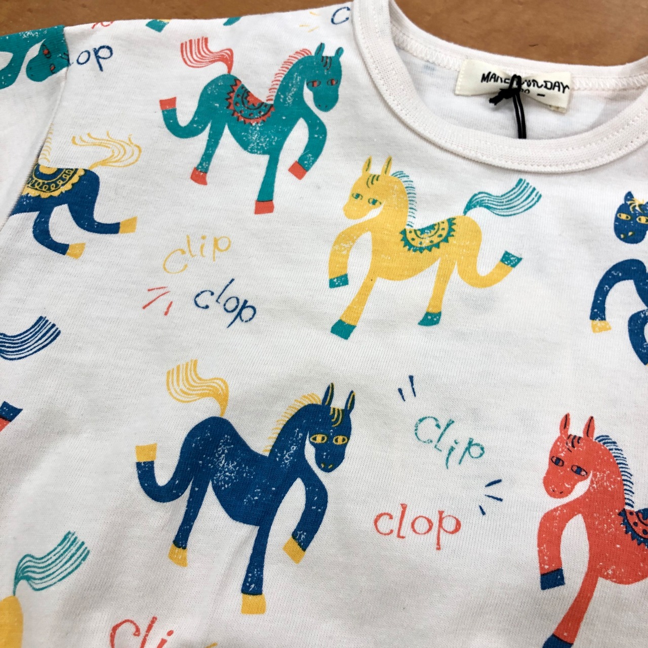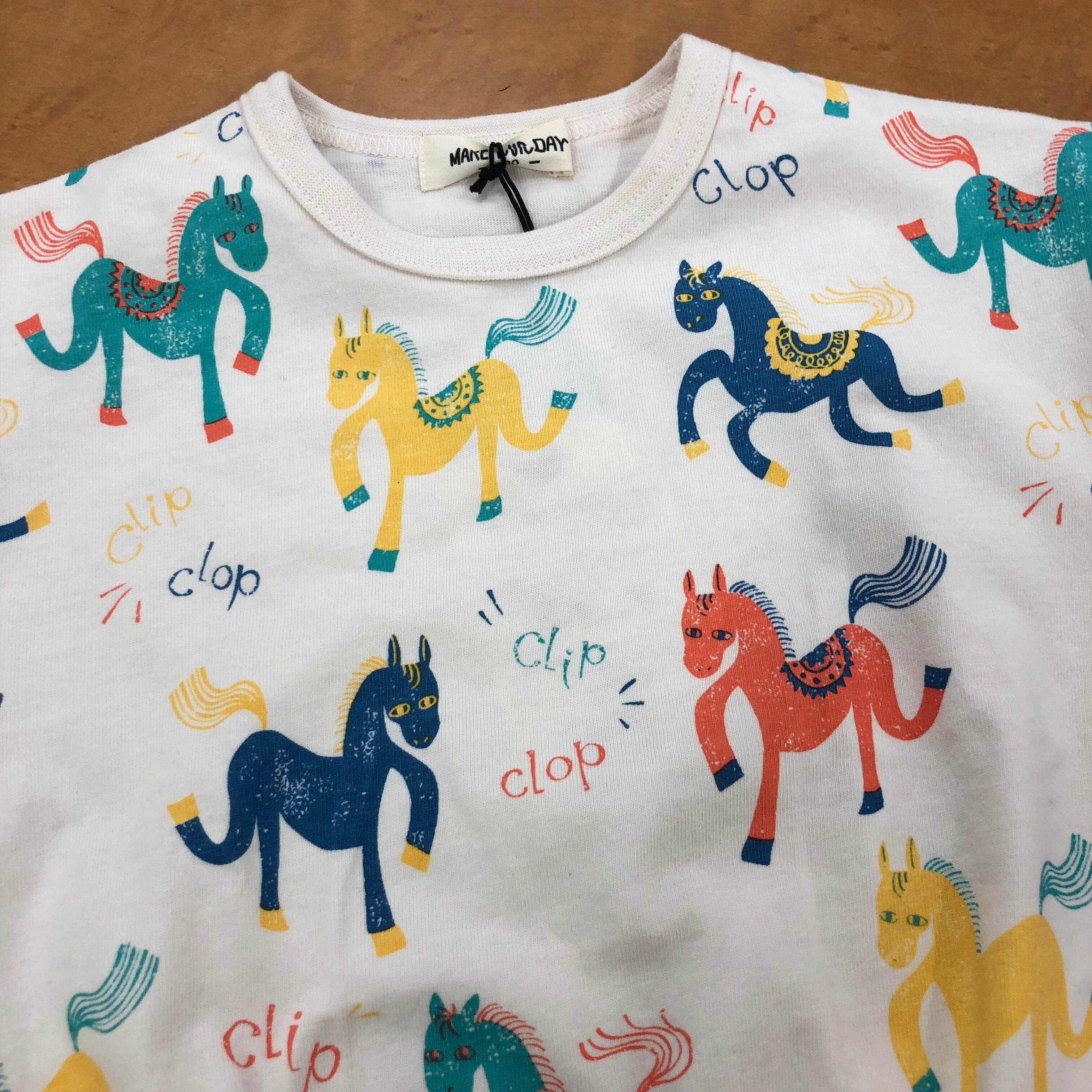 2026年はうま年なので、ちょっとポップでカラフルなポニーを総柄にしてTシャツにしました!