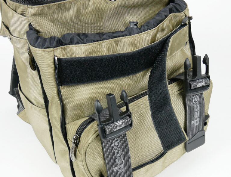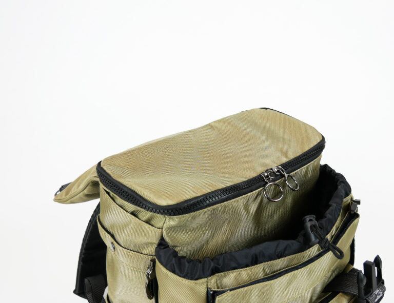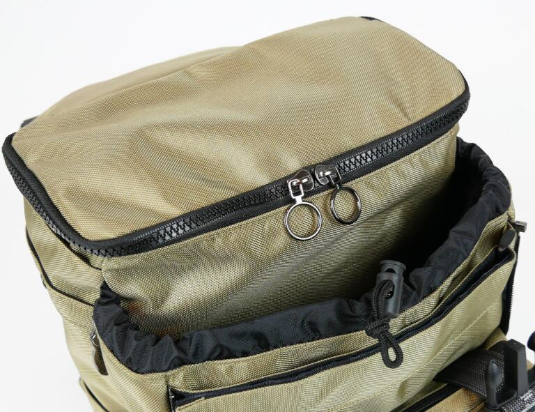 そんなメインコンパートメントの外側には、両サイドにファスナーを備えたサブコンパートメントが。こちらはファスナーでコンパートメントの奥行きを詰めたり広げたりできるので、荷物が少ないときにはコンパクトなシルエットで使うことが可能です。