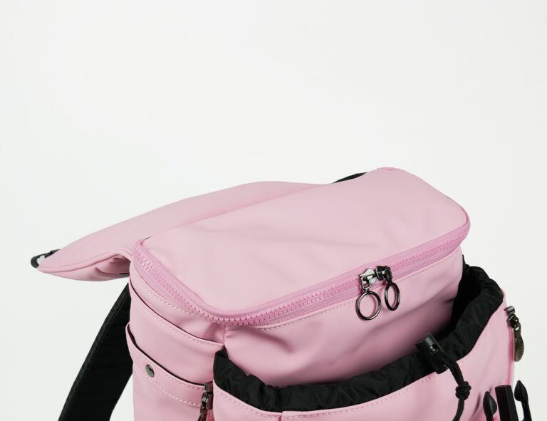 そんなメインコンパートメントの外側には、両サイドにファスナーを備えたサブコンパートメントが。こちらはファスナーでコンパートメントの奥行きを詰めたり広げたりできるので、荷物が少ないときにはコンパクトなシルエットで使うことが可能です。