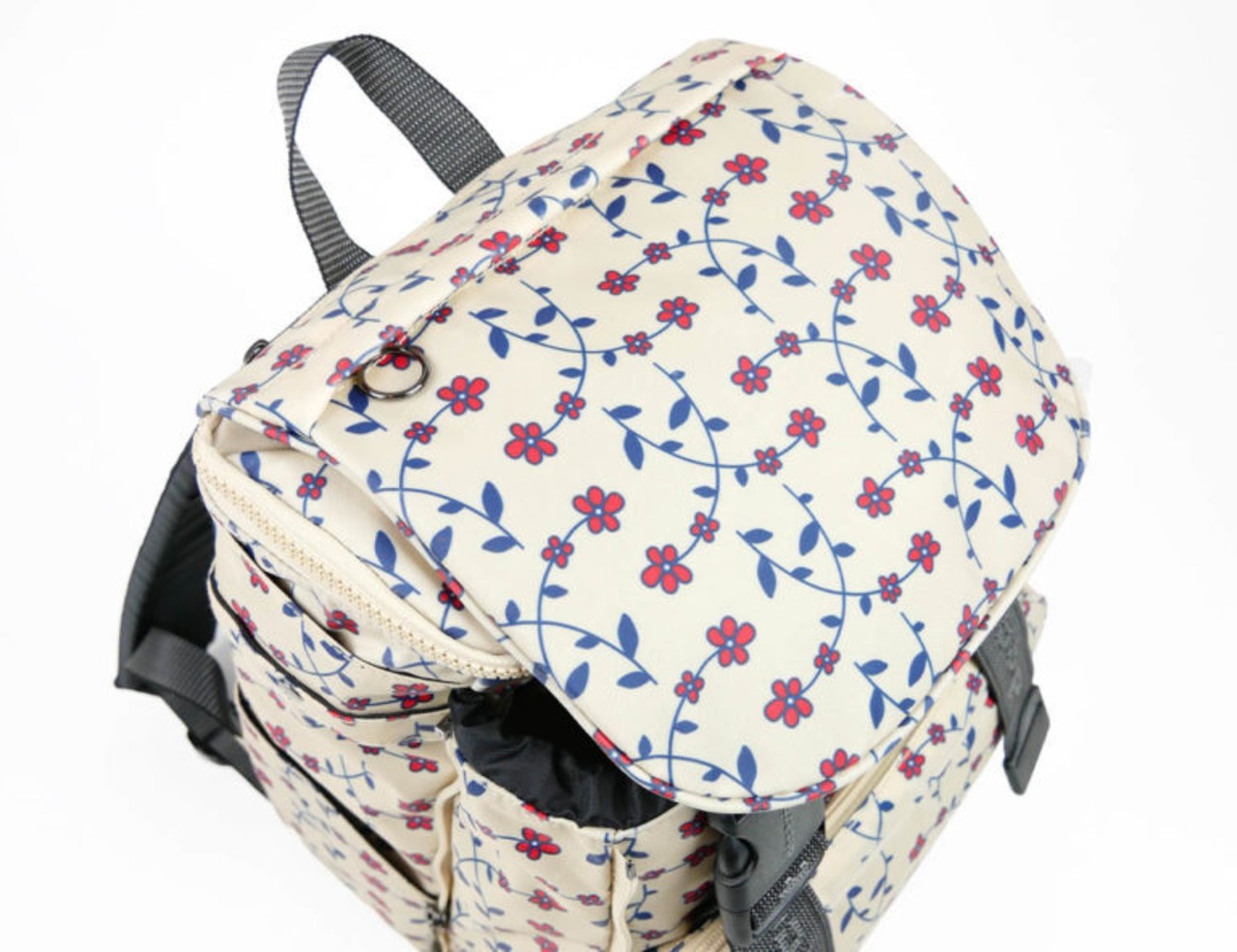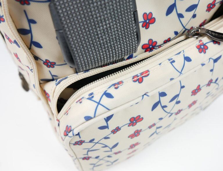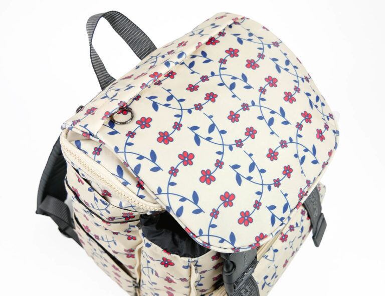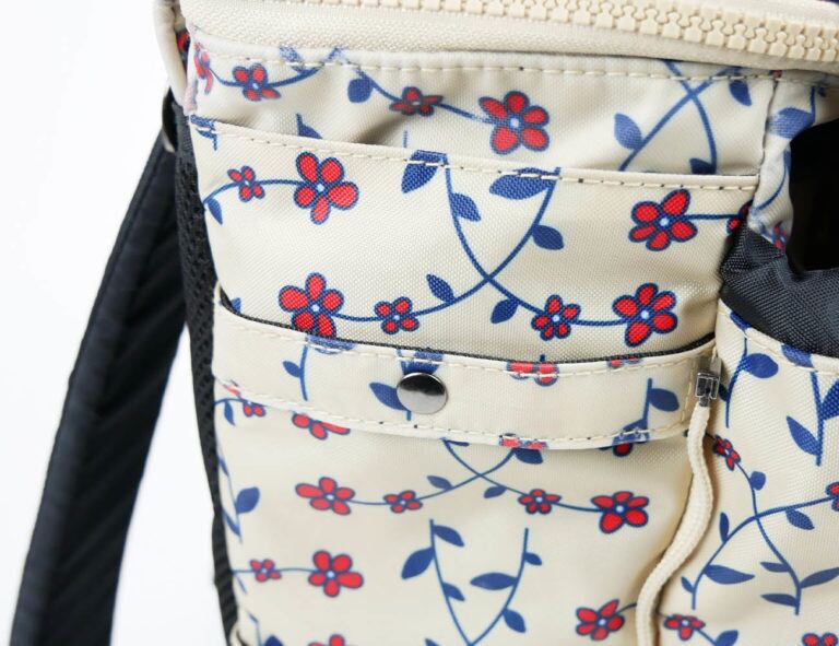 フラップや本体外側には、ファスナー付きのポケットを備えているので、失くしてしまいがちな小物は仕分けて収納できます。