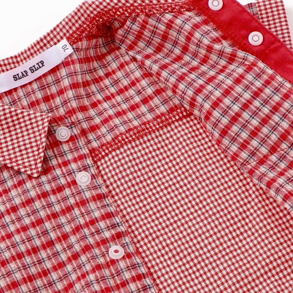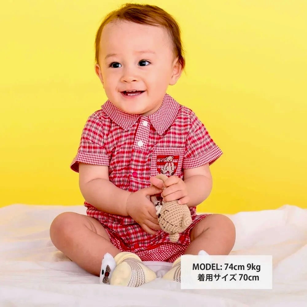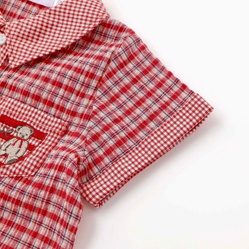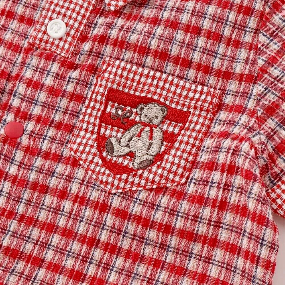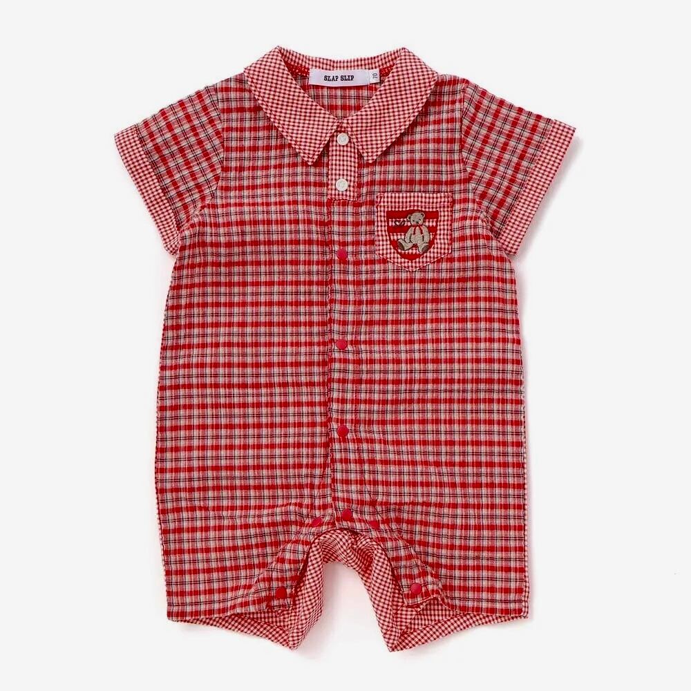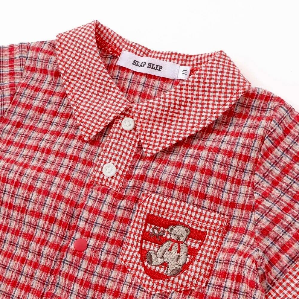 SLAP SLIP baby クマアニマル刺しゅう胸ポケット襟付きチェック半袖ロンパース 1837-82122