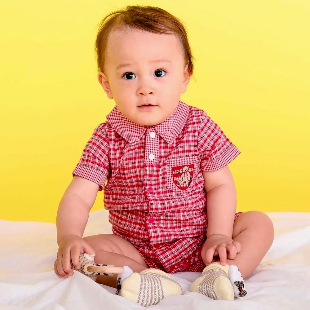 チェックでも重くなりすぎず、普段着からお出かけまで幅広いシーンで活躍するロンパースになっています。