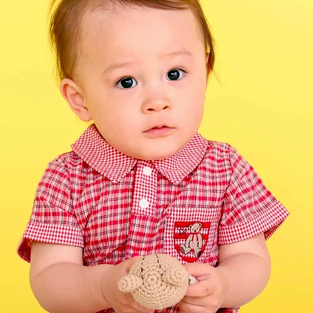 胸ポケットのクマさんエンブレム刺しゅうがアクセントとなり、カジュアルながらも可愛らしいポイントに。