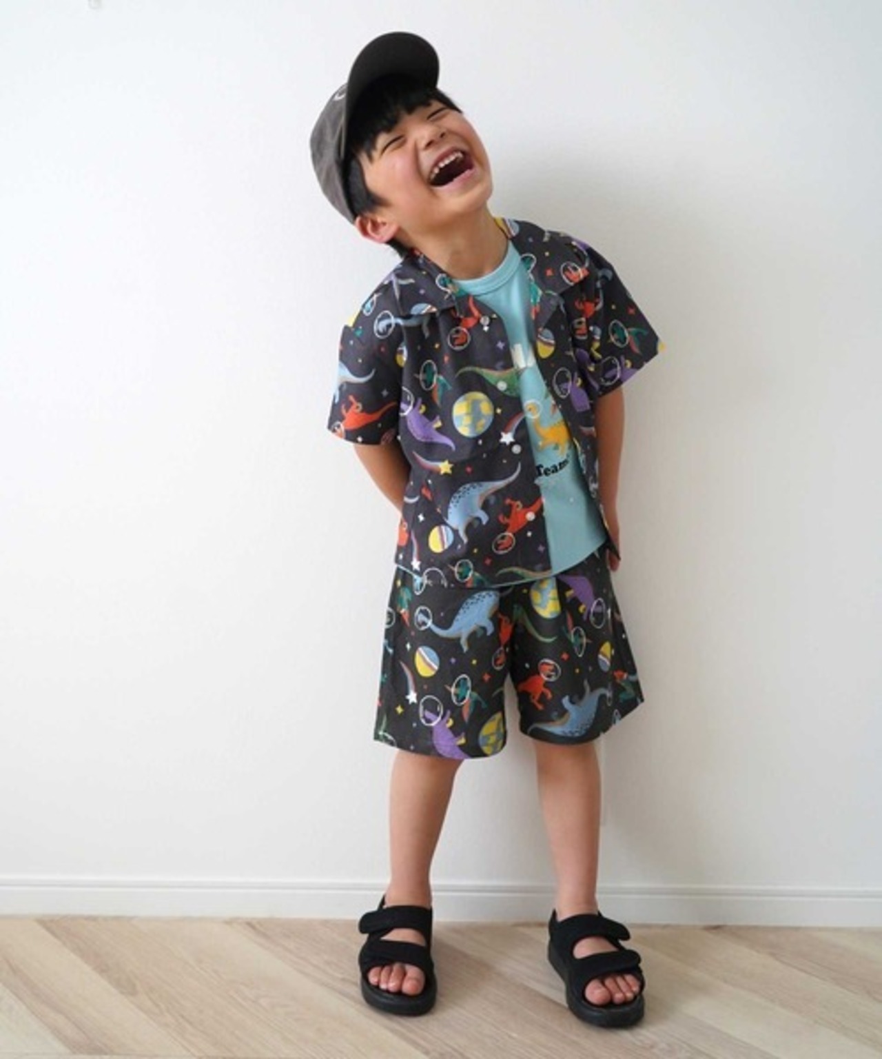 おそろい柄のTシャツと合わせてセットアップが楽しめる!