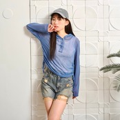 上品な色合いとヘンリーネックが大人っぽい印象を与えます。