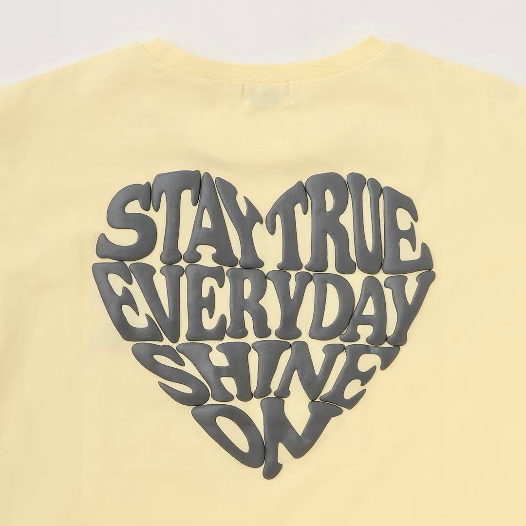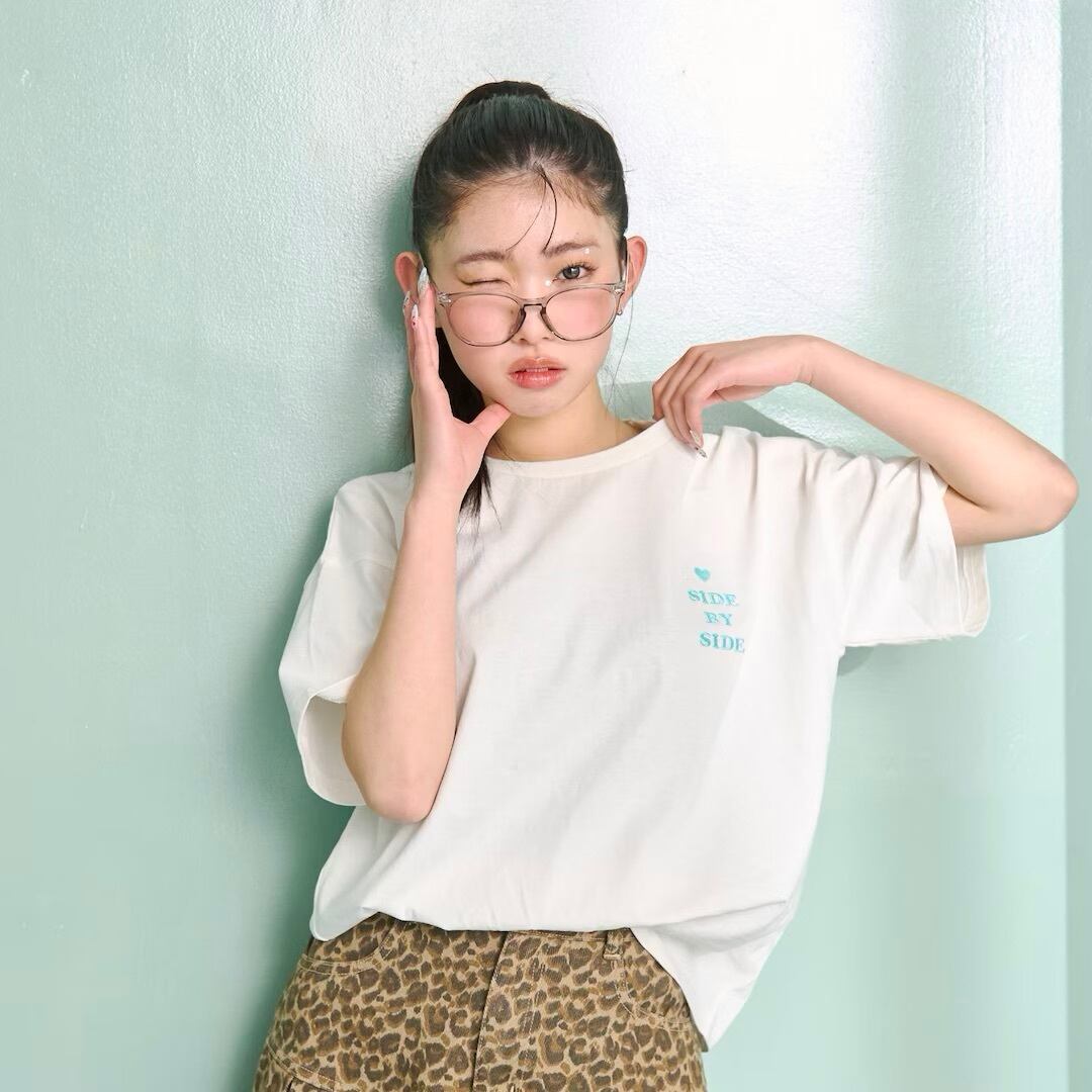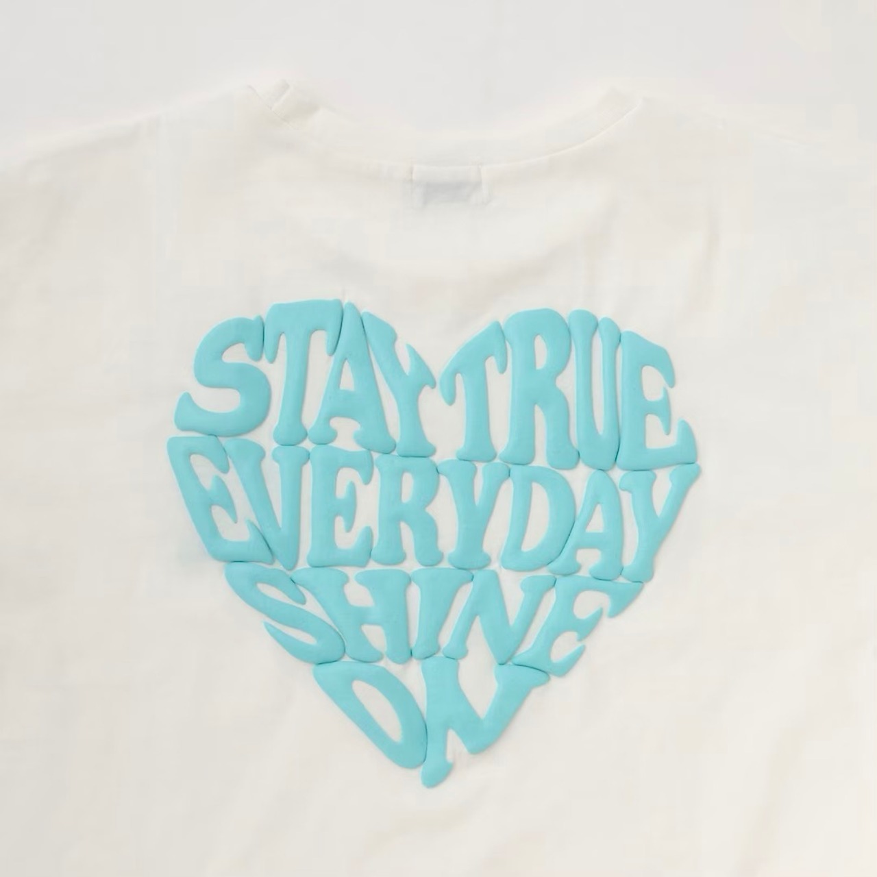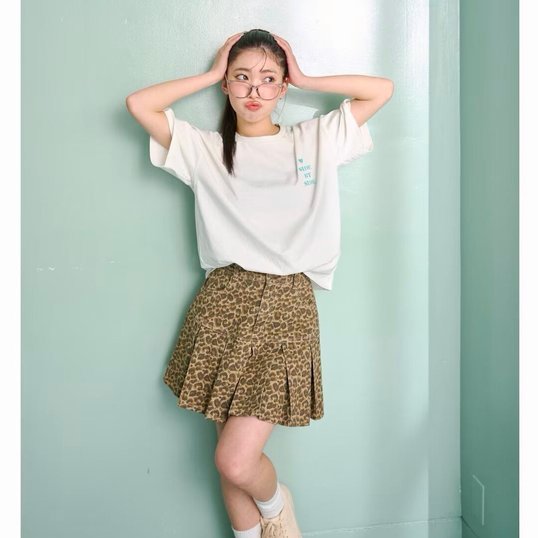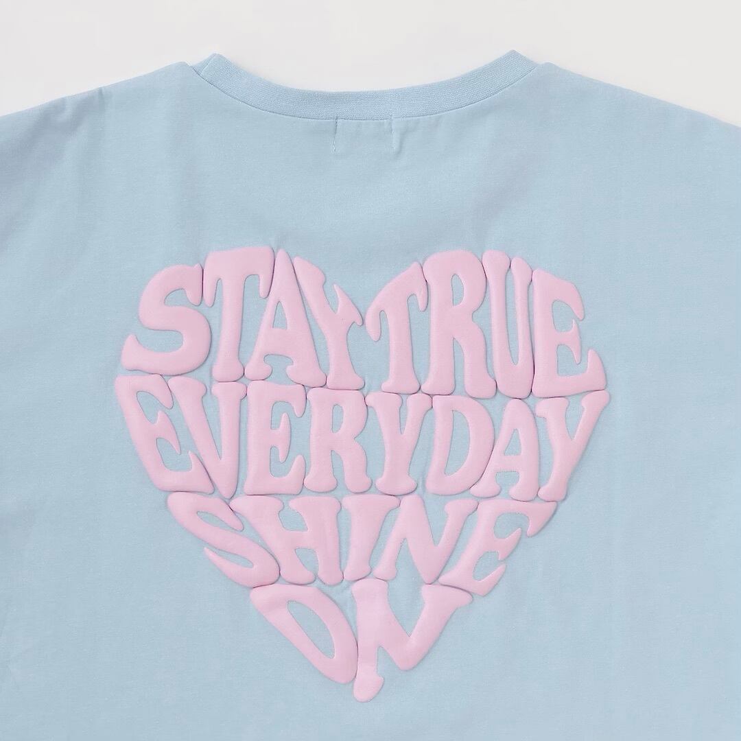 立体感のある発泡プリントがかわいらしい半袖Tシャツです。