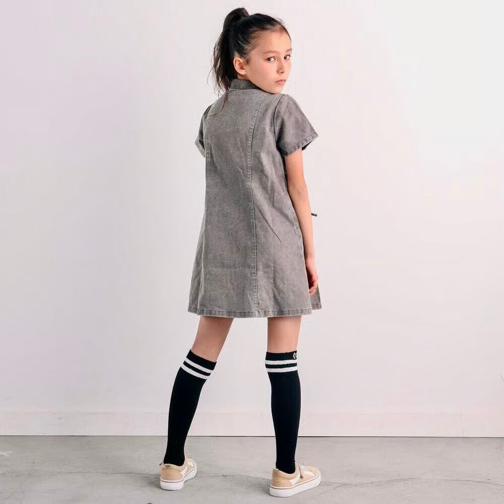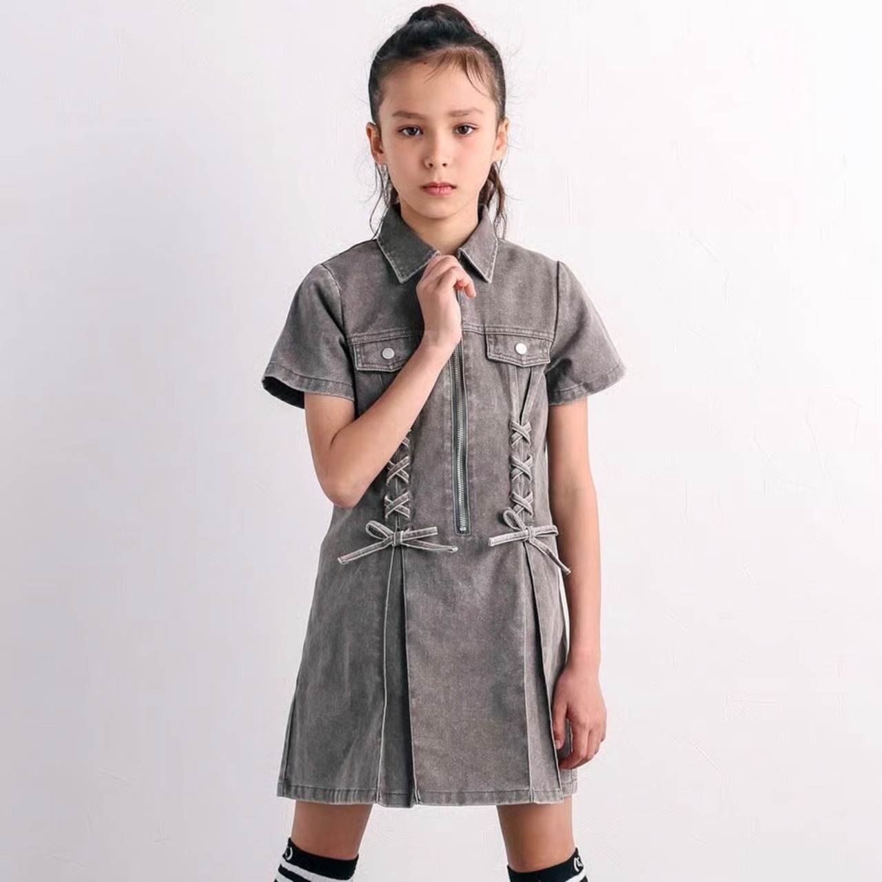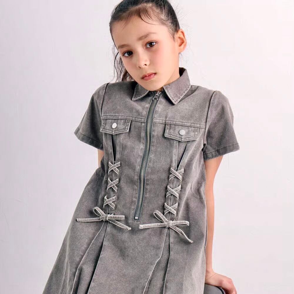 プリンセスラインのシルエットとレースアップのディテールが、女の子らしさを引き立てます。