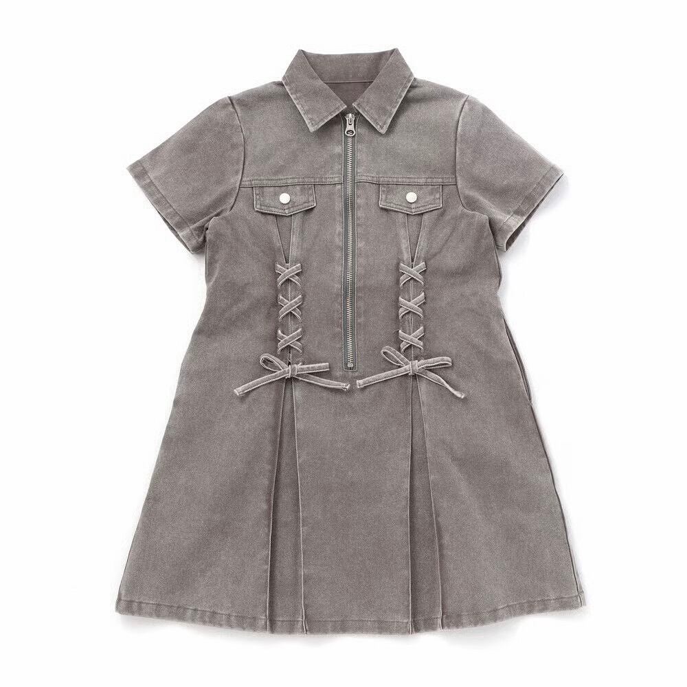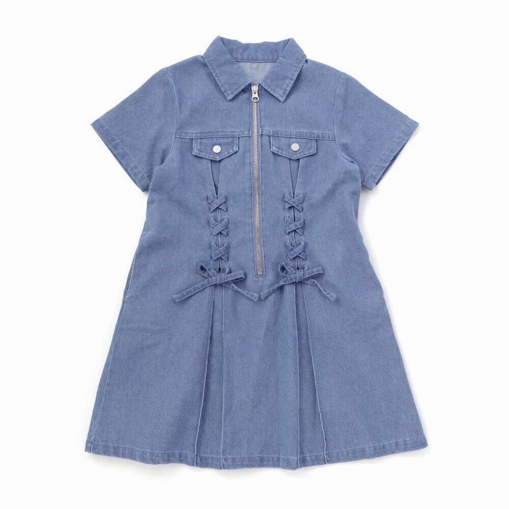 nexchic ネクシック プリンセスラインレースアップデニム&ツイルワンピース 1861-82501