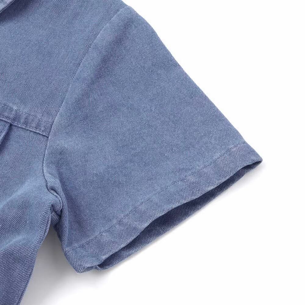 カラーごとに異なる素材を使用しており、ブルーはカジュアルな印象のデニム素材、アッシュグリーン(グリーン)はしっかりとしたツイル素材で、カラーによって異なる雰囲気を楽しめます。