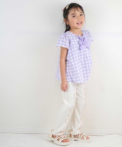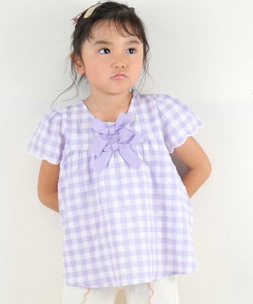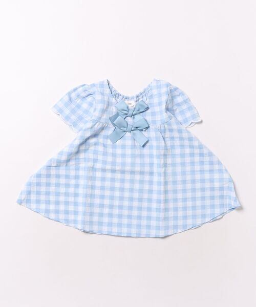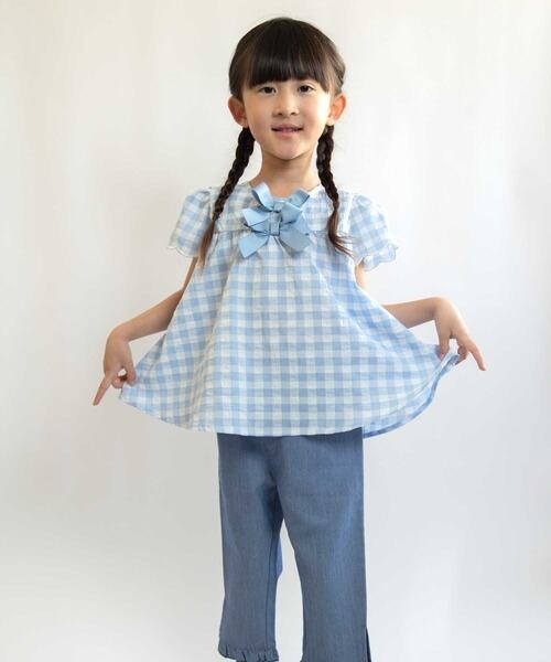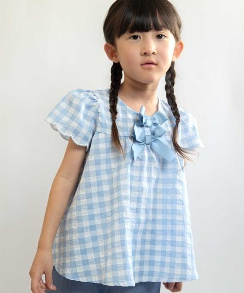 リボンがポイントのギンガムチュニック。