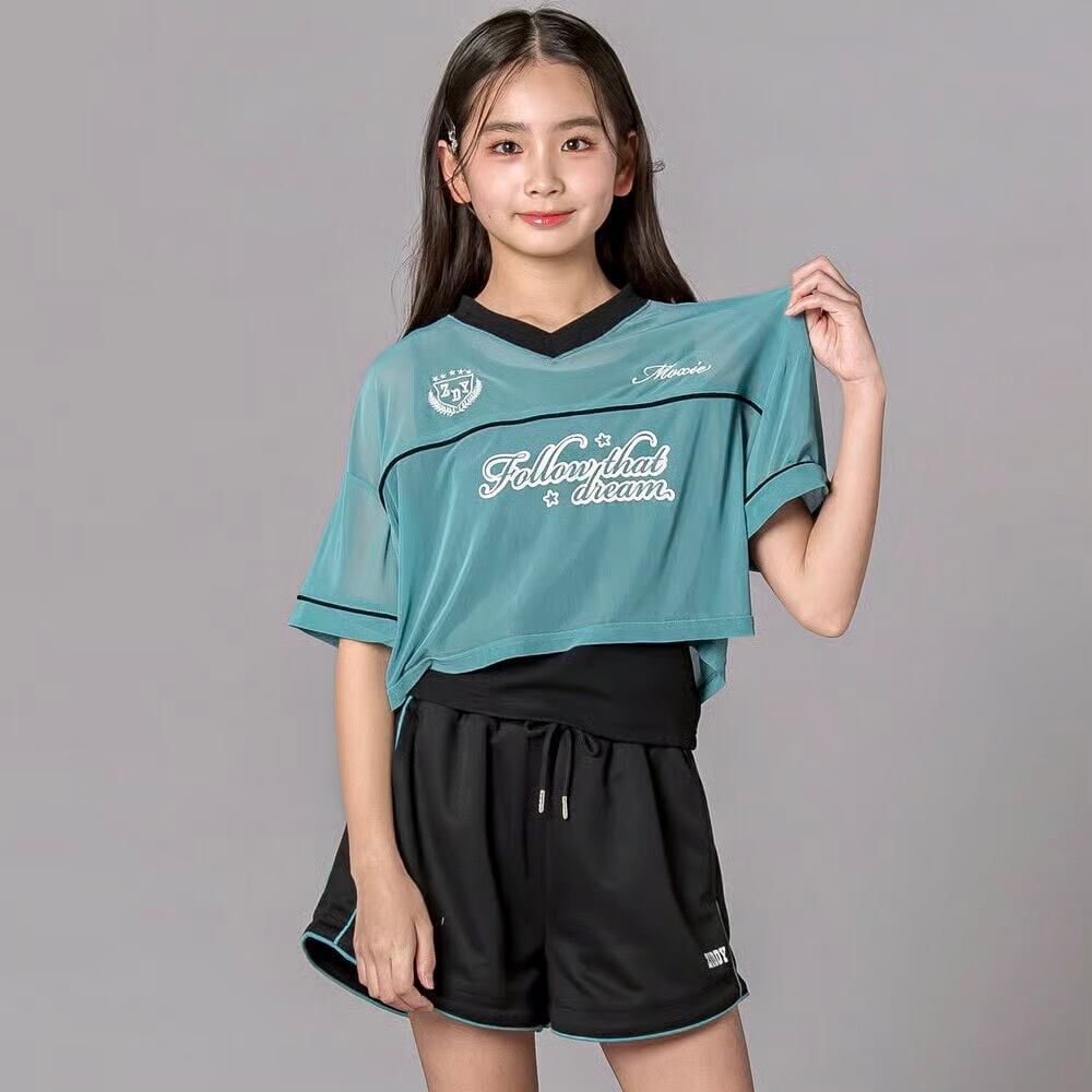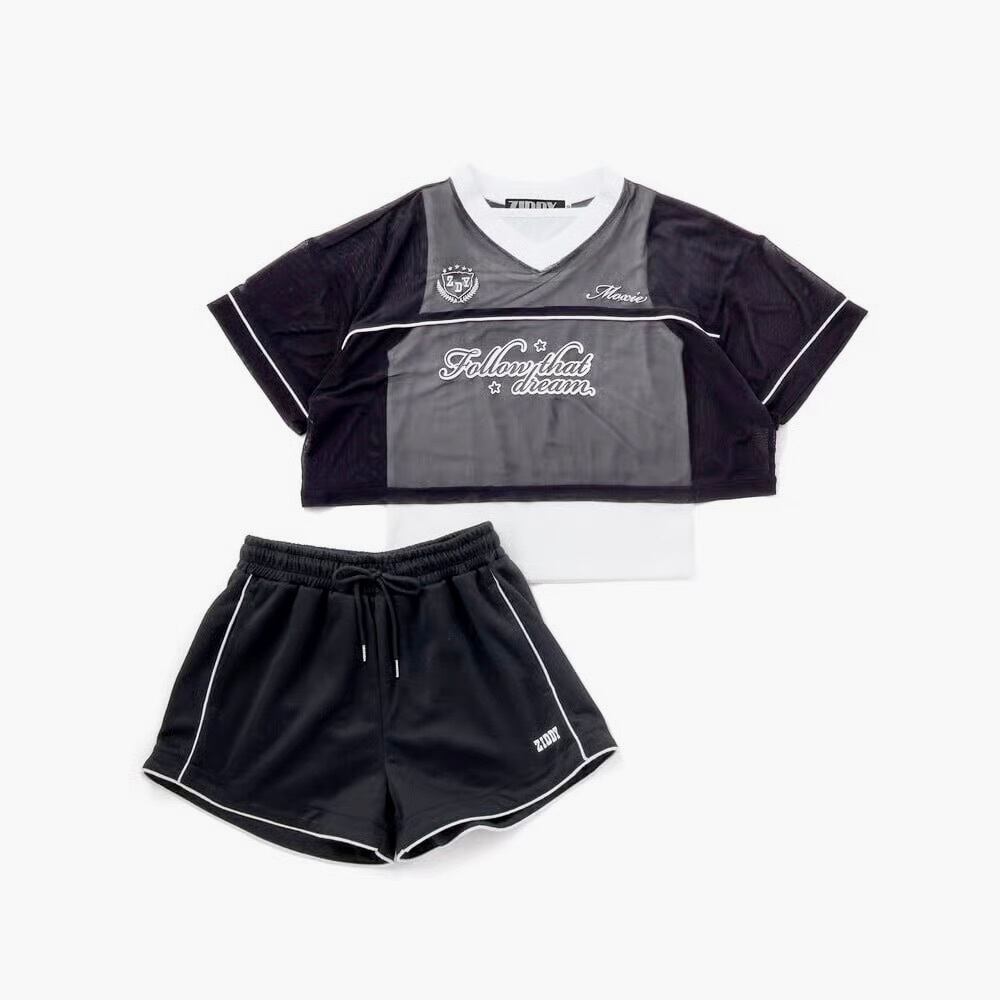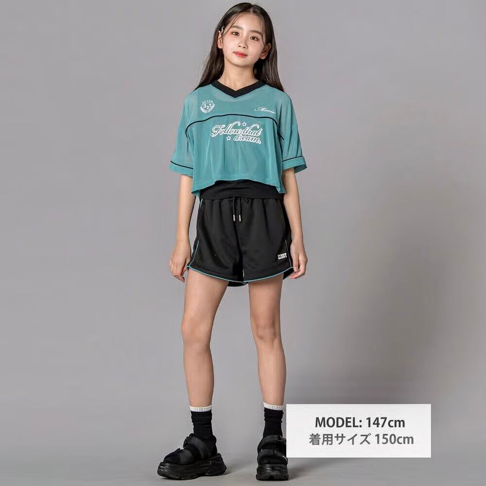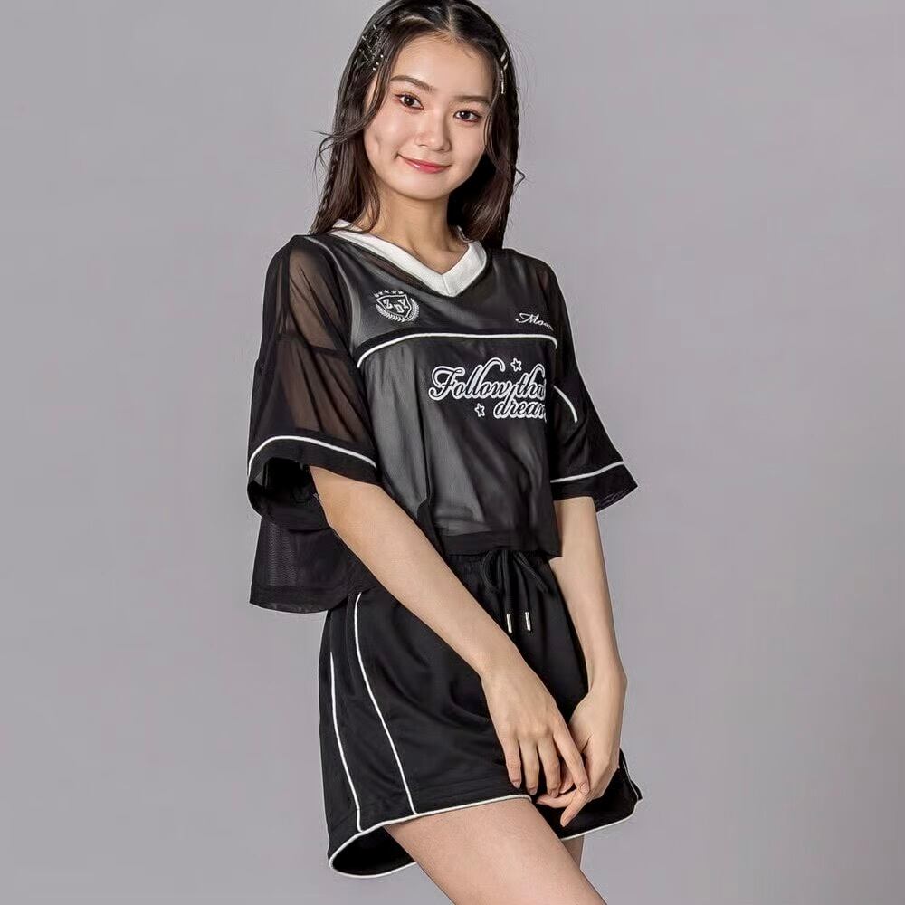 透け感トップス×スポーティショーパンで、春夏らしいグロウスポMIXスタイルが完成。