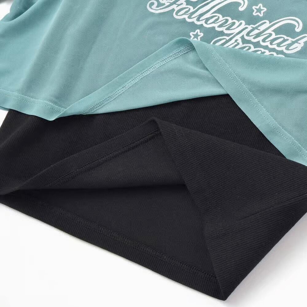 トップスは軽いチュール×伸びの良いテレコで、動きやすくて長時間でもラクちん。